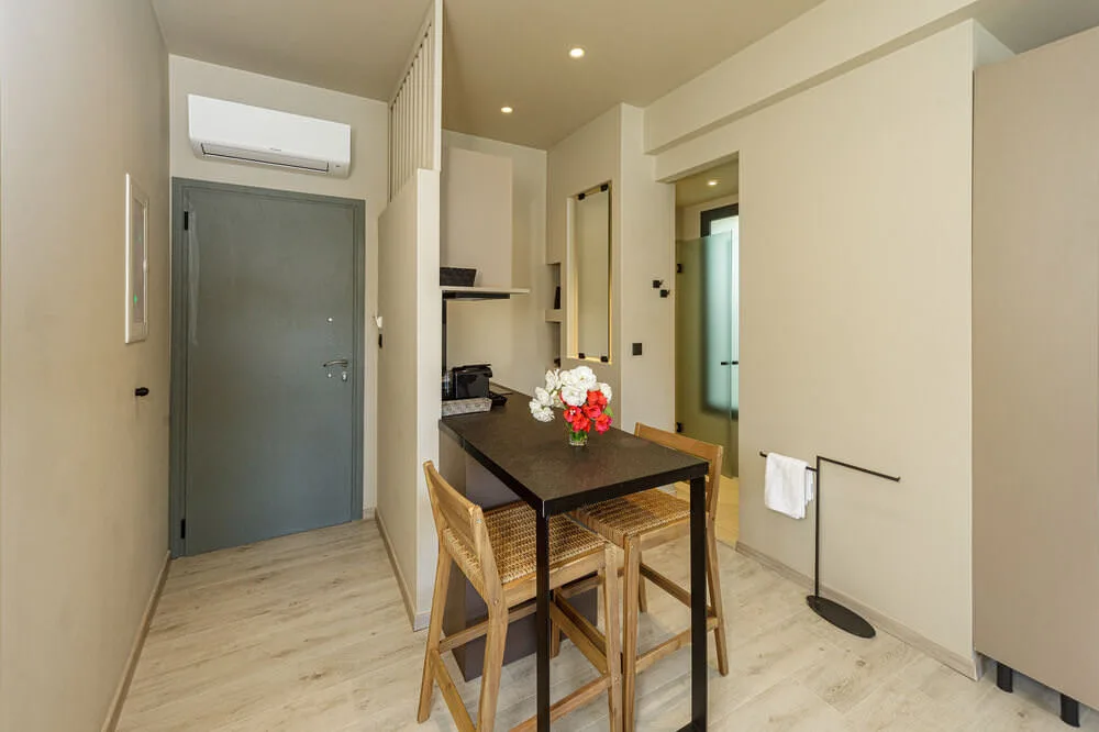 Ideal for couples, the studios accommodate up to 2 adults, with a baby cot available upon request for your little one’s comfort.